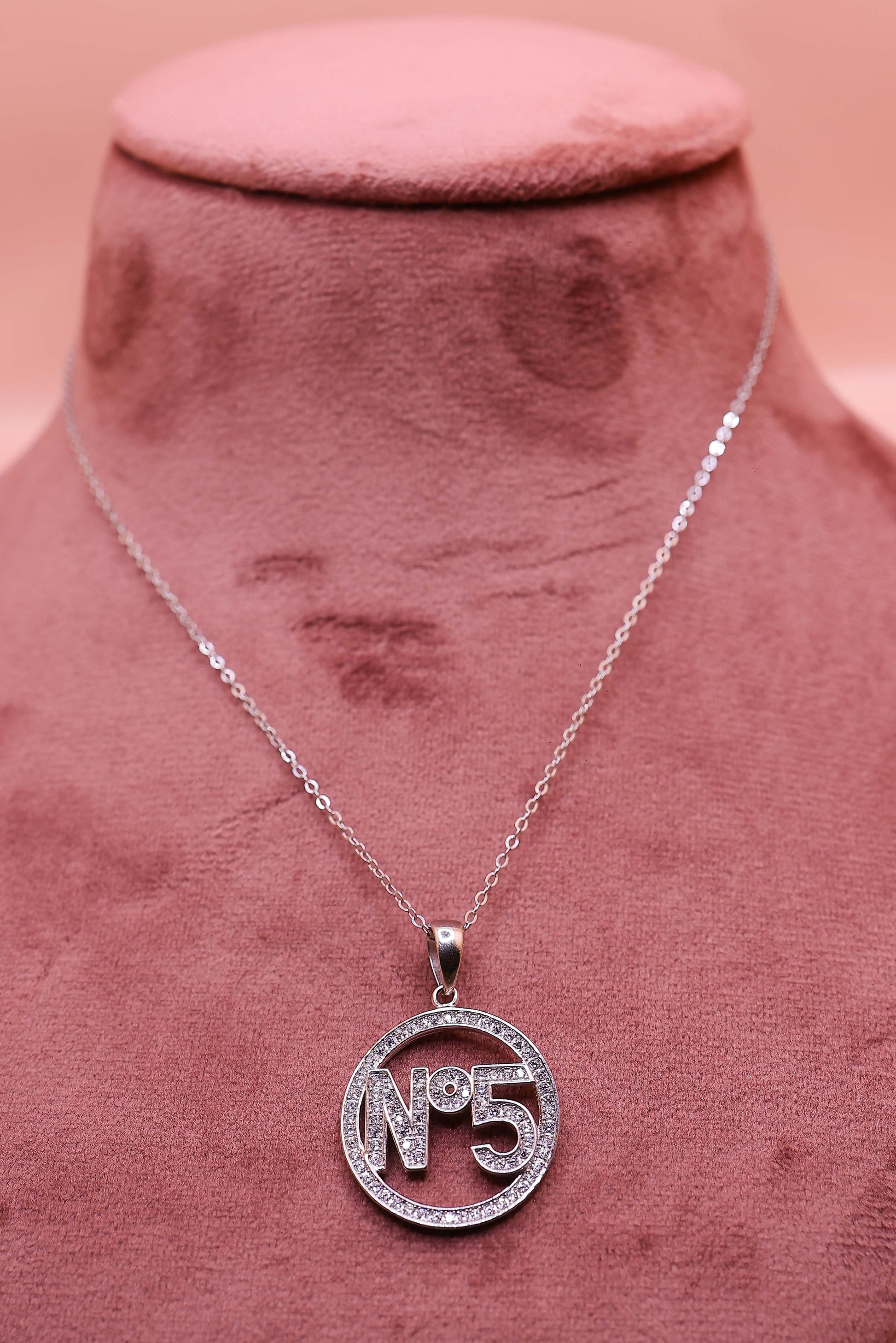 The No.5 Signature Circle Pendant is a modern expression of identity and elegance. Designed with a sleek circular frame, this pendant highlights the number 5 in a bold yet refined style, beautifully accented with shimmering American Diamonds.