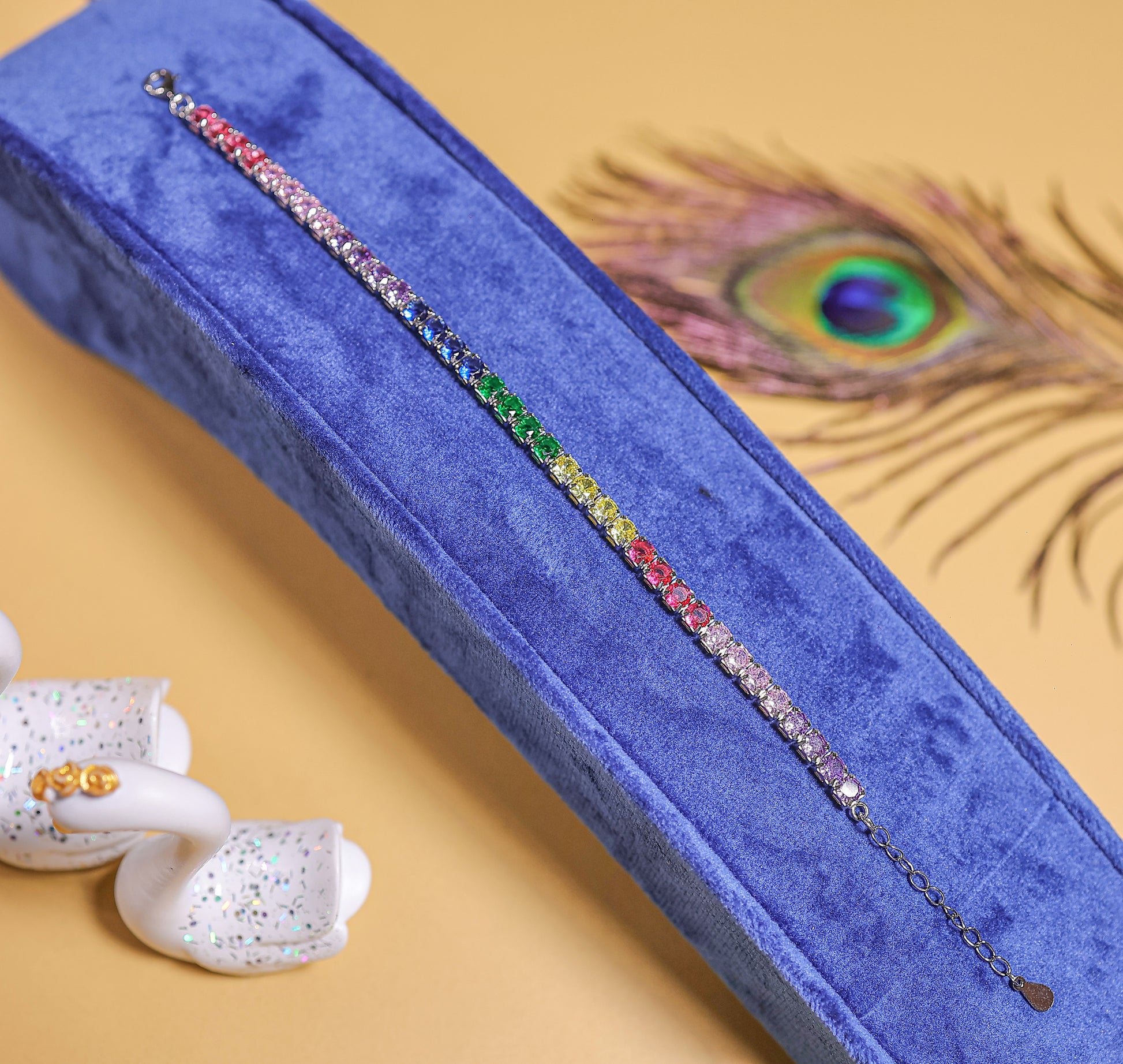 The Color Glow Bracelet is a sleek and stunning silver piece for girls, featuring a fine line of multicolor stones that subtly shift in shades like a rainbow. This bracelet symbolizes joy, and energy, making it ideal for everyday wear or gifting. Its minimalist design adds just the right sparkle without overpowering — a lucky charm wrapped in elegance.