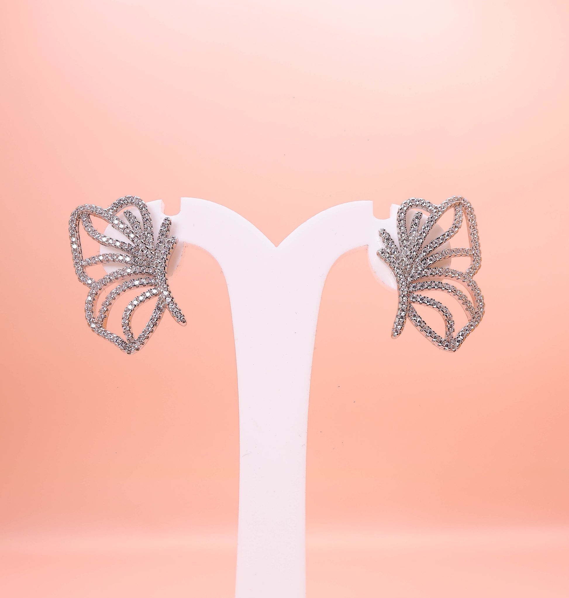 The Silver Flutter Elegance Stud Earrings are inspired by the delicate beauty of butterfly wings, symbolizing grace, freedom, and elegance. Crafted in premium silver, these earrings feature a refined open-wing butterfly design highlighted with fine shimmering stones that add a subtle sparkle. The sleek curves and lightweight structure make them a perfect blend of modern design and timeless charm.